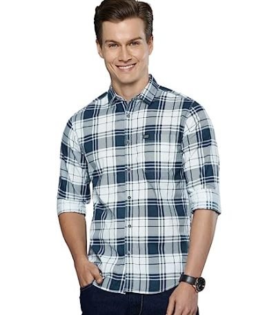 The Indian Garage Co Men’s Checkered Slim Shirt (0121-SH72-04_White Medium) : Clothing & Accessories