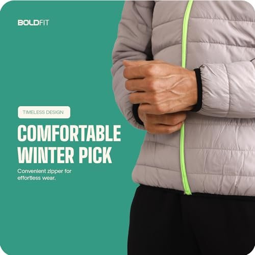 Buy Boldfit Polyester Men’s Padded Standard Length Jacket (Bomberjacketl-501_Grey Charcoal) at