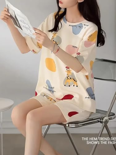 Buy LOUIS LUXE Womens Polyester Night Dress | Short Pyjama Set | Nightsuit | Nightwear |Round Neck Short Sleeve Nightsuit | Loungewear | Everyday Nightdress (ND-01-OFFWHITE-M) at