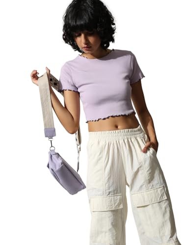 Be the first to review “Buy ONLY Women Solid Cotton Crop Length Slim Fit Purple T-Shirt at”