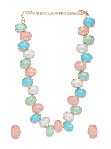 Buy Rubans Azure Frontier Magic Gold-Plated Multicolor Stone Studded Jewellery Set For Women at