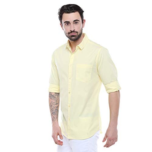 Dennis Lingo Men’s Cotton Yellow Green Solid Casual Shirt (C301_Yellow_XL) : Clothing & Accessories