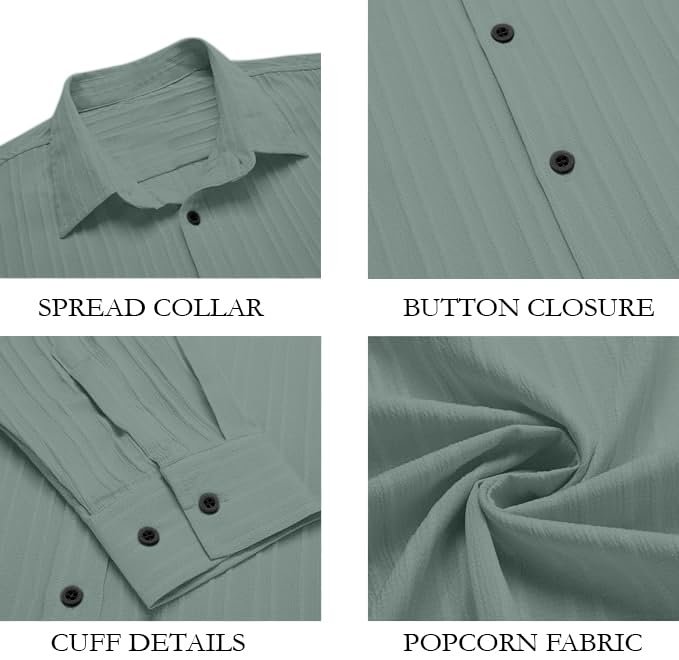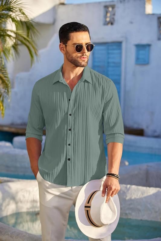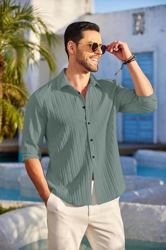 These breathable men’s shirts are the perfect choice for warm weather activities. With their lightweight cotton fabric and short sleeves, they allow maximum airflow to keep you feeling cool and comfortable on hot summer days. The loose fit is relaxed and casual, yet still flattering for any body type. Versatile white is easy to pair with shorts, pants or swim trunks. Wrinkle-resistant and quick drying, these shirts maintain their shape whether you’re lounging at the beach or enjoying active pursuits. The epitome of effortless style and comfort. Crafted with attention to detail, this shirt is designed for the modern man who values fashion. This casual long sleeve button-down shirt is perfect for any occasion. With its loose yet tailored fit, you’ll feel comfortable and stylish whether wearing it to the office, a wedding, or out for dinner and drinks. The soft cotton fabric feels great against your skin and breathes well so you stay cool. Small details like chest pockets and buttoned cuffs add functionality without compromising the clean, understated look. Subtle stripes and colors like light blue, white, and grey make this shirt versatile to pair with different bottoms.