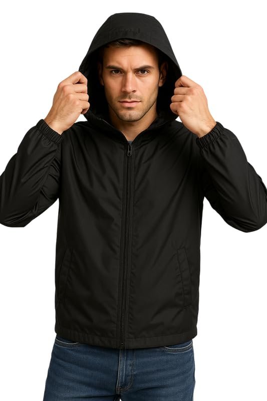 Stay protected in style with this Men’s Black Windcheater Raincoat, designed for comfort, durability, and daily use. Crafted from high-quality polystar fabric, this lightweight rain jacket offers water resistance and wind protection, making it perfect for unpredictable weather. The attached hood ensures extra coverage, while the full front zipper and side pockets provide both convenience and functionality. Whether you’re commuting, traveling, or just heading out for a walk, this jacket is your reliable companion. Its minimalist design and easy-to-pack construction make it ideal for both city life and outdoor adventures.