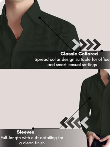 Leriya Fashion Men’s Formal Button Down Shirt – Slim Fit Office Wear Shirt’s for Men | Textured Long Sleeve Cotton Blend | Business & Meeting Ready (Available in Plus Size and Combo Pack of 2) Green : Clothing & Accessories