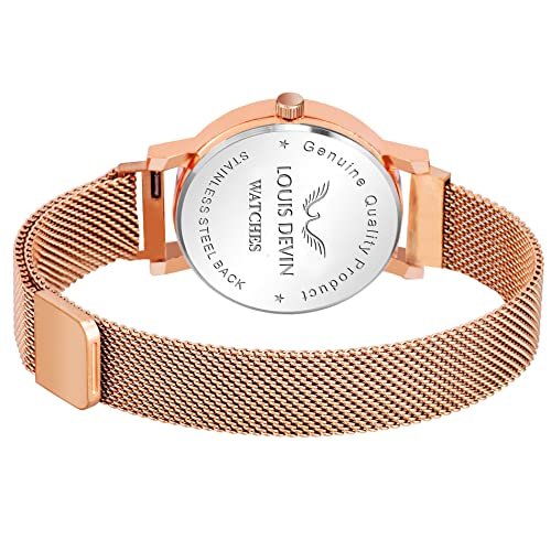 LOUIS DEVIN Rose Gold Plated Mesh Chain Analog Wrist Watch for Women (Blue Dial) | LD-RG162-BLU : Fashion