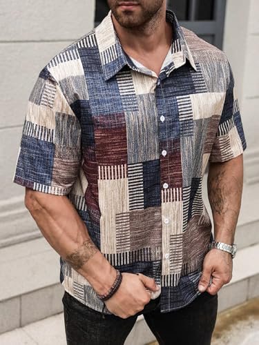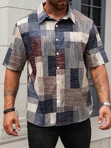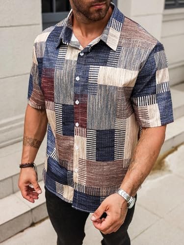 Lymio Mens Clothing Cotton Regular Fit Patchwork Printed Casual Shirt Blue (Turkys-Blue-XL) : Clothing & Accessories