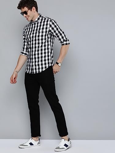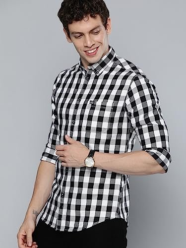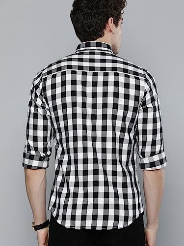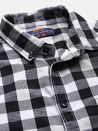 The Indian Garage Co Men’s Checkered Slim Shirt (0121-SH72-04_White Medium) : Clothing & Accessories