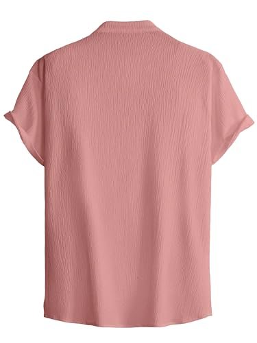 WEBRIC Shirt for Men | Casual | Plain | Cap Sleeve | Summer – Regular Fit | Old Money | Peach Shirts : Clothing & Accessories